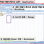 [스크립트] Excel Object(개체) 모델 스크립트 언어나 C#, VB.NET에서 Excel에 대한 처리를 하기 위해서 마이크로 소프트는 Excel에 대한 dll을 제공하고 있습니다. 이 dll을 사용하기 위해서는 Excel에 대한 Object 구성을 먼저 이해하고 있어야 합니다. 따라서 이글에서는 Excel Object에 대해서 살펴보도록 하겠습니다. Excel Object는 Microsoft.Office.Interop.Excel 어셈블리 안에 있습니다. 대표적인 개체인 Application는 다음과 같은 구성을 가지고 있습니다. Microsoft Office Excel을 사용하는 솔루션을 개발하려면 Excel 개체 모델에서 제공하는 개체와 상호 작용합니다. 이 항목에서는 가장 중요한 다음 개체에..